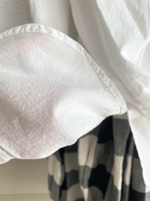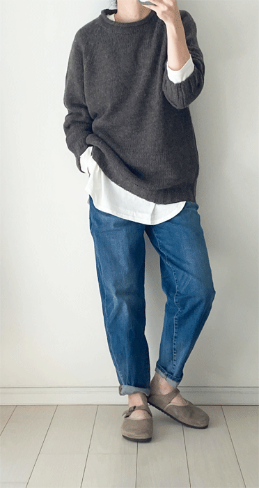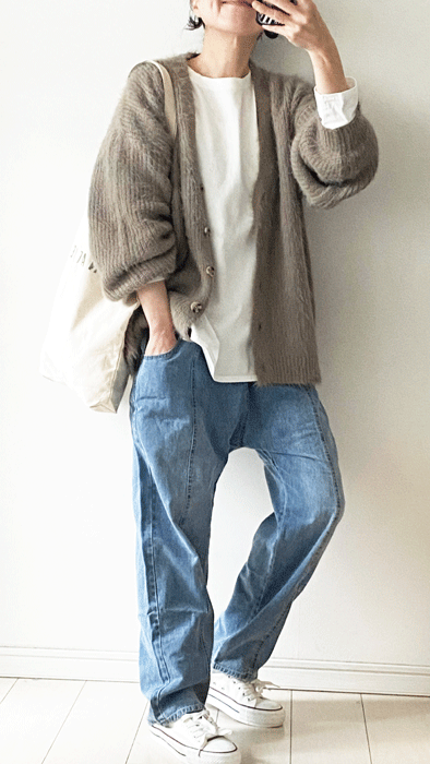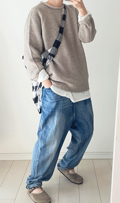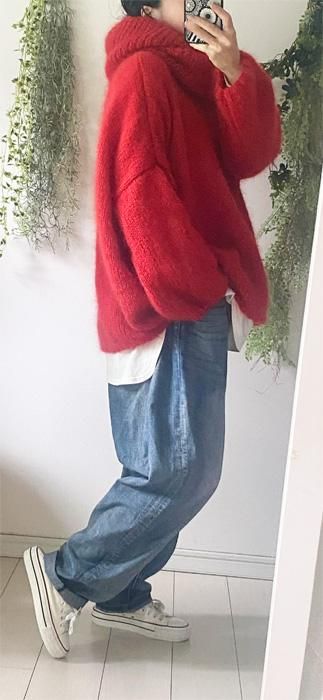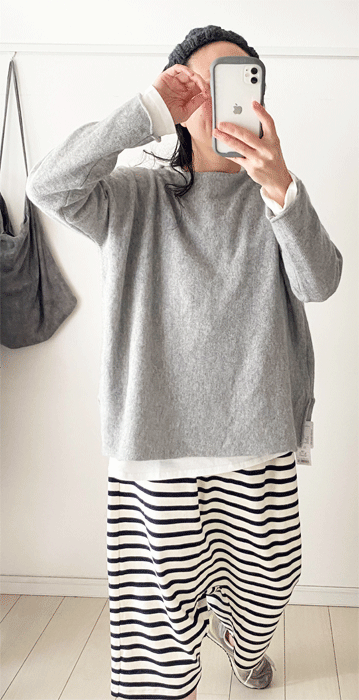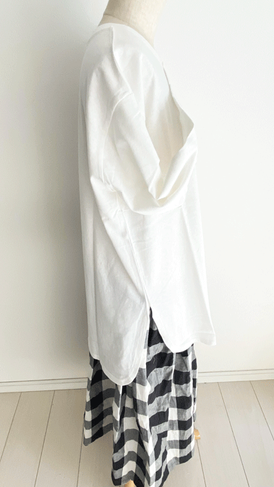 ふわっとオーバーサイズに仕上げ、肩まわりは