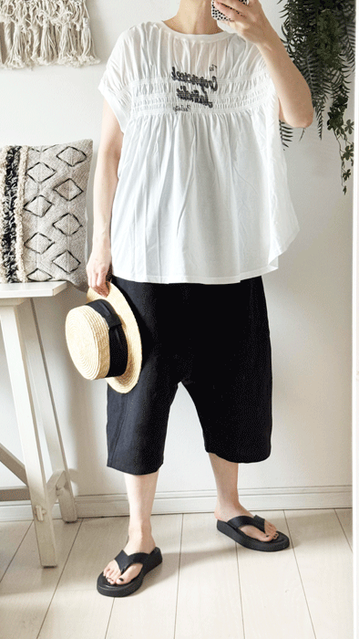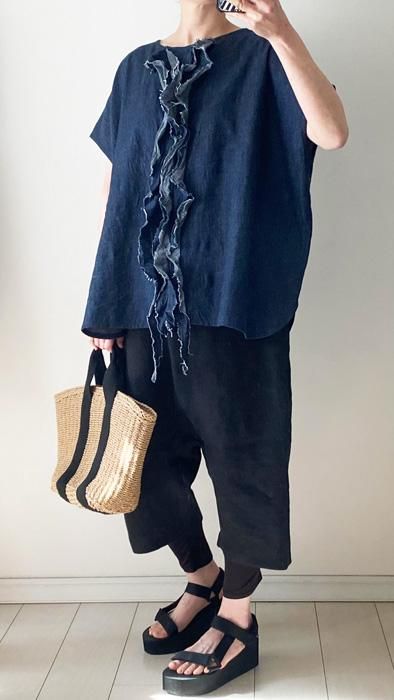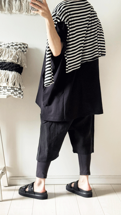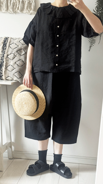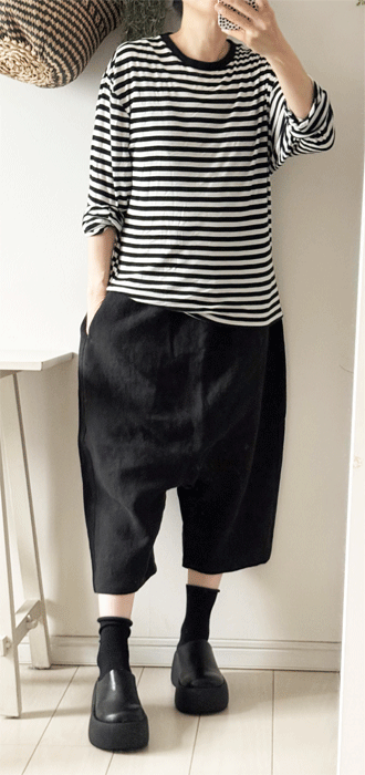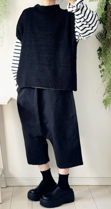 【即納♪】■ブラック■ベルギーリネンのサルエルパンツ・handmade