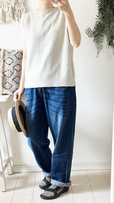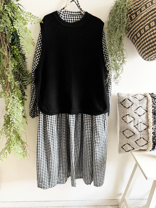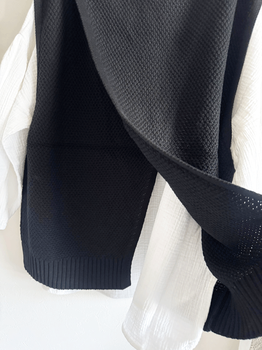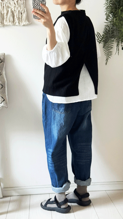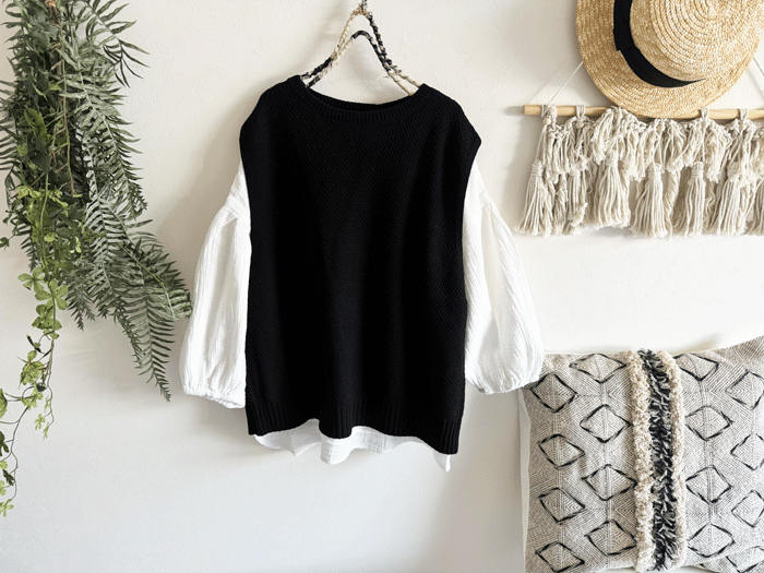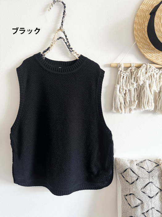 コットンニットの後ろが開いている可愛いベスト