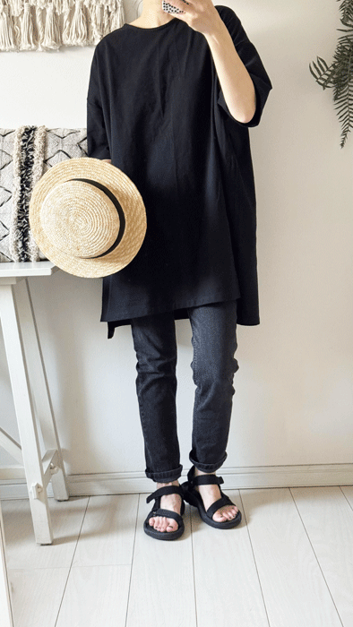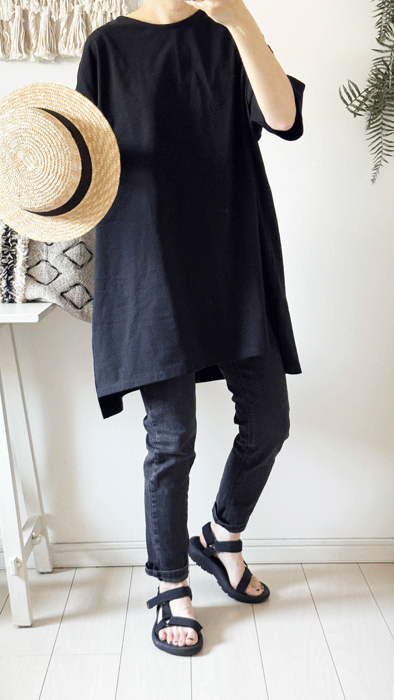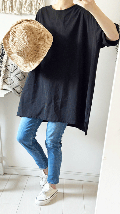 チュニック丈のゆったりTシャツ