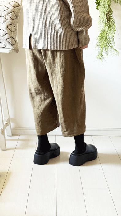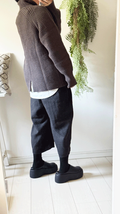 折らずに立てても、折り返してもサマになります。前後差のある裾ラインには