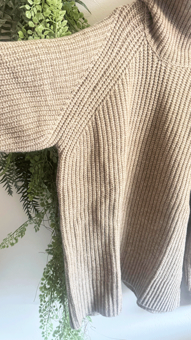 ラグランスリーブ仕様は、腕まわりの動きを妨げず、自然なドレープ感を演出。