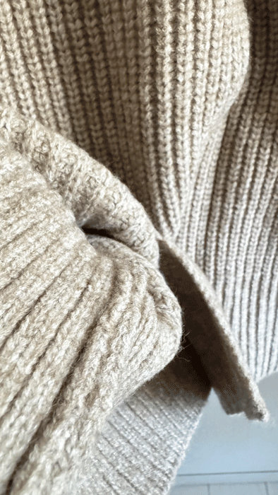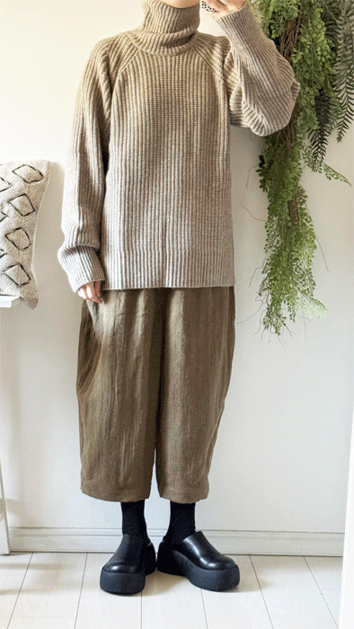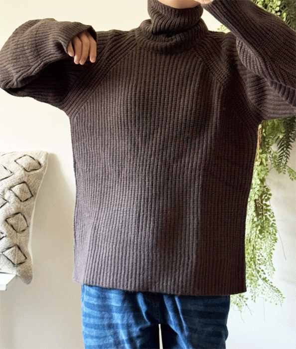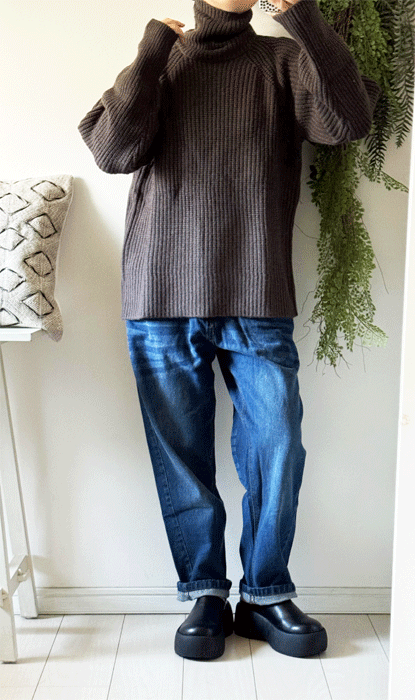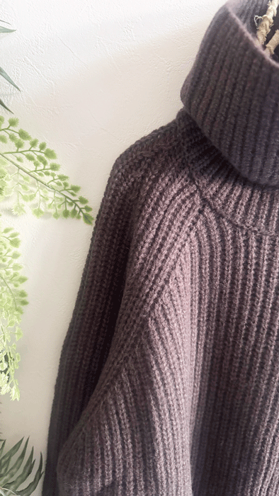 ハイネックは高さを持たせながらも柔らかくフィットするため、首元に窮屈感がなく、
