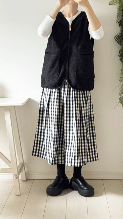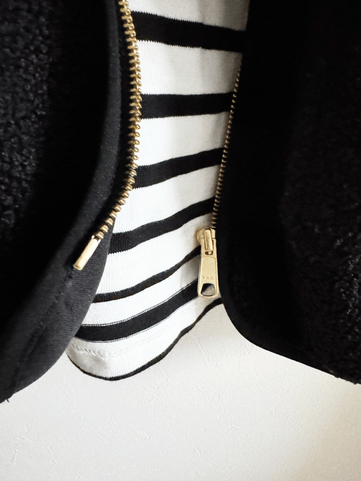 ゴールドのファスナーで上品なボアベストになっています。