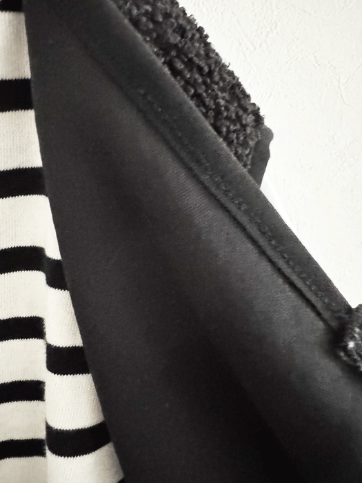 やわらかな肌触りのボア素材が、着るだけであたたかく、見た目にもほっこりとした印象に。
