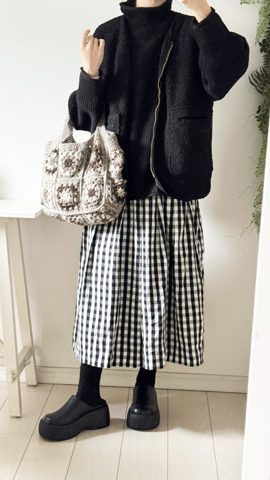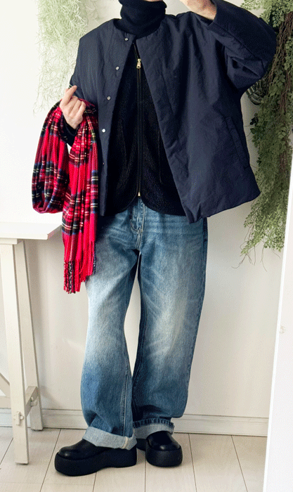 ややゆとりのあるサイズ感で、抜け感のある大人カジュアルな着こなしに。