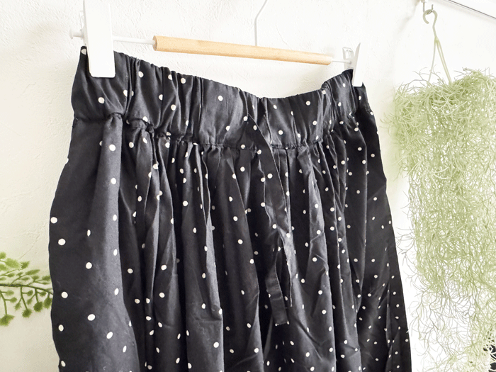 ウエストは総ゴム仕様でリラックス感のある穿き心地。