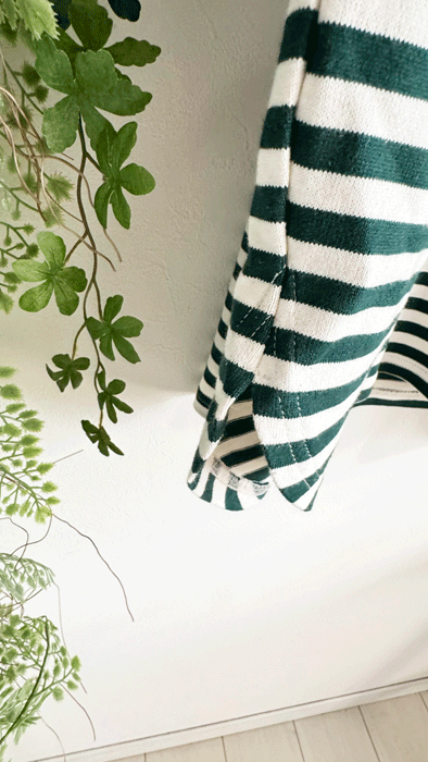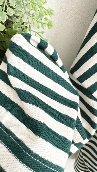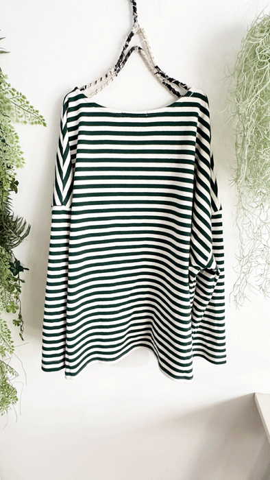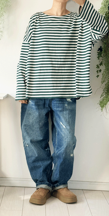 【即納♪】グリーンのゆったりボーダーTシャツ・handmade