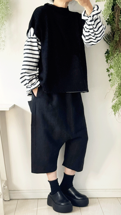 レイヤードしやすいゆったりシルエットのニットベスト。